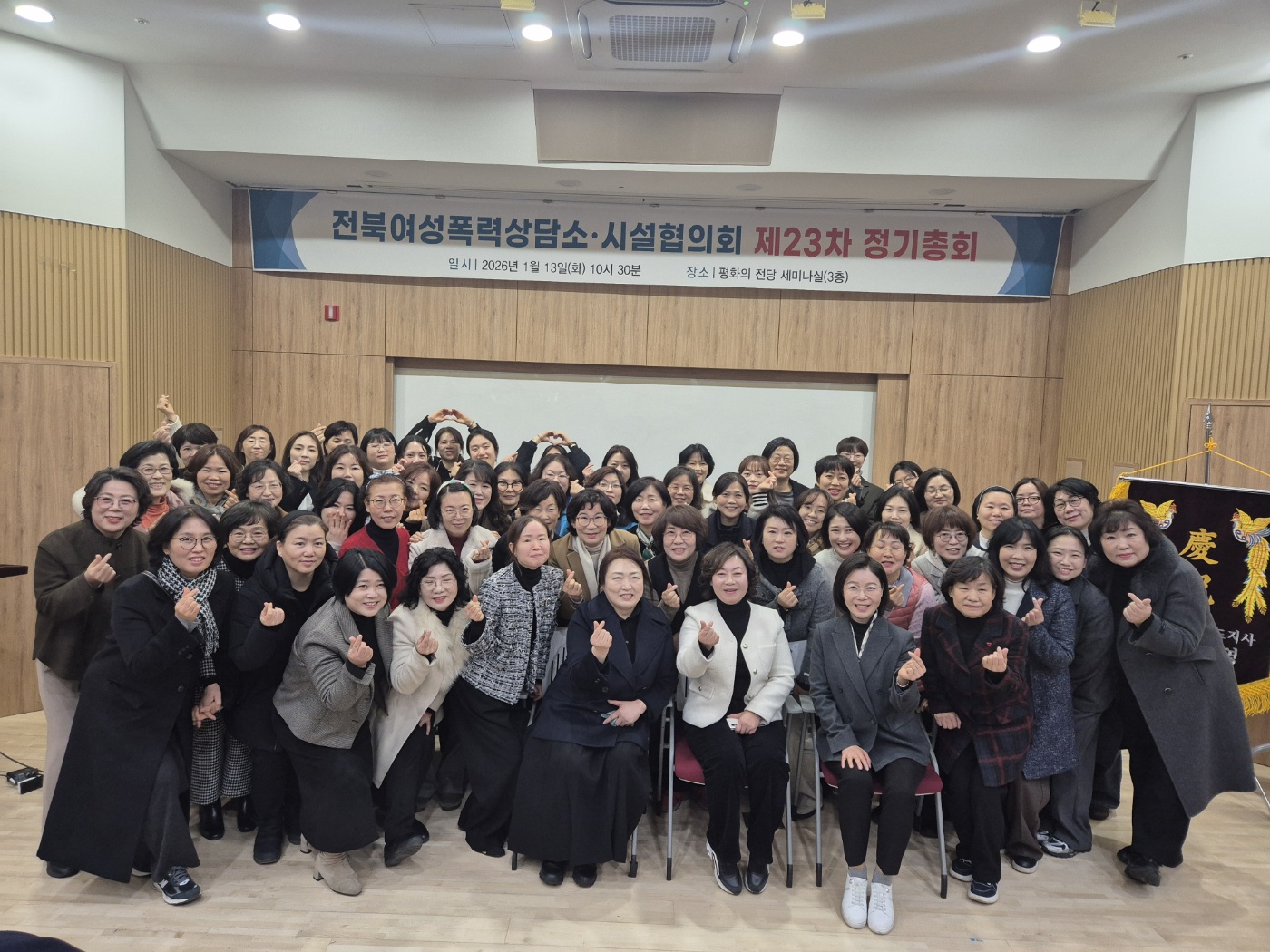 ÀüºÏ¿©¼ºÆø·Â »ó´ã¼Ò.½Ã¼³ÇùÀÇȸ Á¦ 23Â÷ Á¤±âÃÑȸ * ÀÏ ½Ã: 2026³â 1¿ù 13ÀÏ(È) 10:00 ~ 13:00 2026³â ÀüºÏ¿©¼ºÆø·Â»ó´ã¼Ò․½Ã¼³ ÇùÀÇȸ Á¦23Â÷ Á¤±âÃÑȸ°¡ ´ë¸éÀ¸·Î °³ÃֵǾú½À´Ï´Ù. À̹ø ÃÑȸ¿¡¼´Â 2025³â ÇÑ ÇØ µ¿¾ÈÀÇ È°µ¿ ¼º°ú¸¦ °øÀ¯Çϰí, 2026³â Ȱµ¿ ¹æÇâ°ú °èȹÀ» ÇÔ²² ³íÀÇÇÏ´Â ¶æ±íÀº ½Ã°£ÀÌ ¸¶·ÃµÇ¾ú½À´Ï´Ù. °¢ ±â°üÀÇ ´Ù¾çÇÑ ÀǰßÀÌ ÀÚÀ¯·Ó°Ô ³ª´µ¸ç ÀÇ¹Ì ÀÖ°Ô ¸ð¾ÆÁö´Â ÀÚ¸®¿´À¸¸ç, º» ±â°üµµ Àû±ØÀûÀ¸·Î Âü¿©ÇÏ¿© ¿¬´ë¿Í Çù·ÂÀÇ °¡Ä¡¸¦ ´Ù½Ã ÇÑ ¹ø È®ÀÎÇÏ´Â °è±â°¡ µÇ¾ú½À´Ï´Ù.